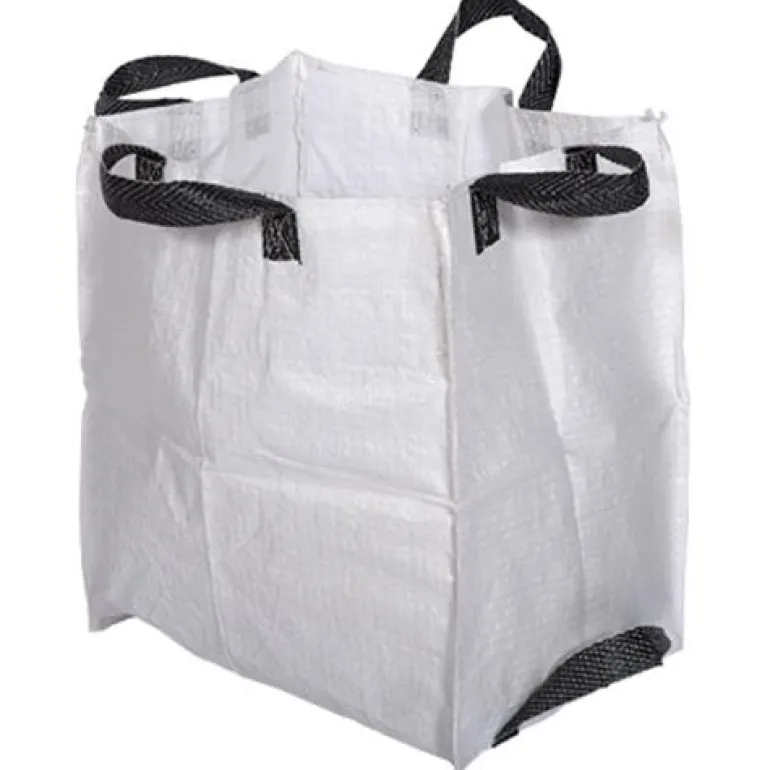 Valkoinen 140 litran puutarhasäkki. Neljä mustaa kahvaa. Valmistettu vahvasta, kudotusta polypropeenikankaasta. Pohjalenkki tarjoaa hyvän otteen tyhjennettäessä.