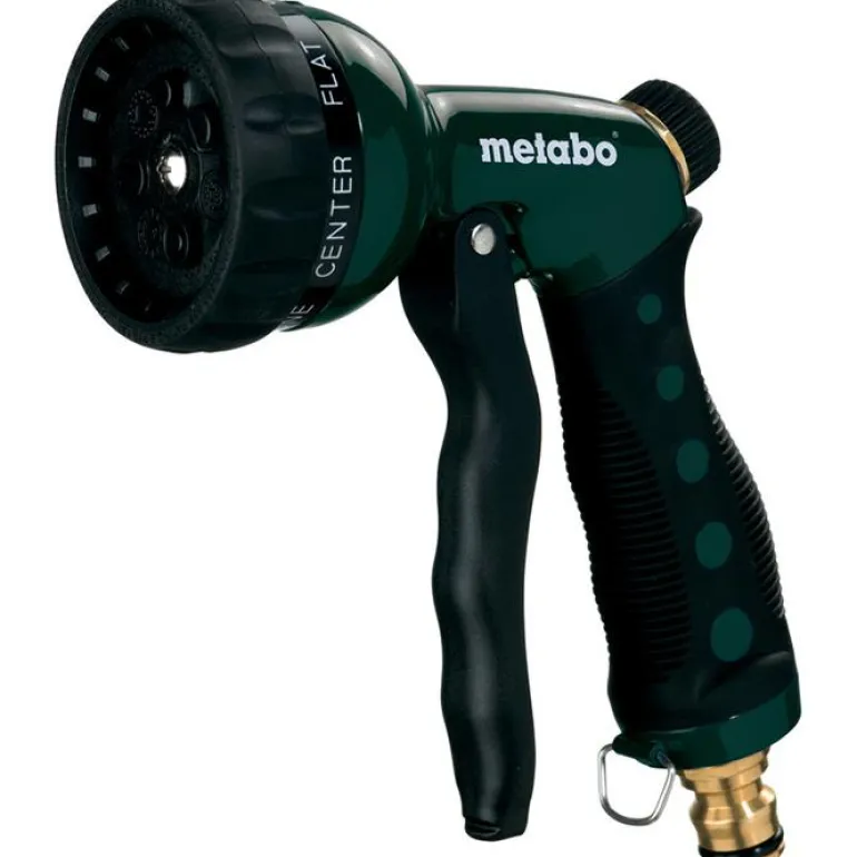 Metabo GB 7 -puutarhasuuttimessa on messinkiliitin, joka sopii kaikkiin tavallisiin liitäntäjärjestelmiin. Suutin mahdollistaa vesisuihkun säädön leveästä ja tehokkaasta suihkusta hienoon sumusuihkutukseen, joten suihkupistooli sopii sekä puhdistukseen että kasteluun.