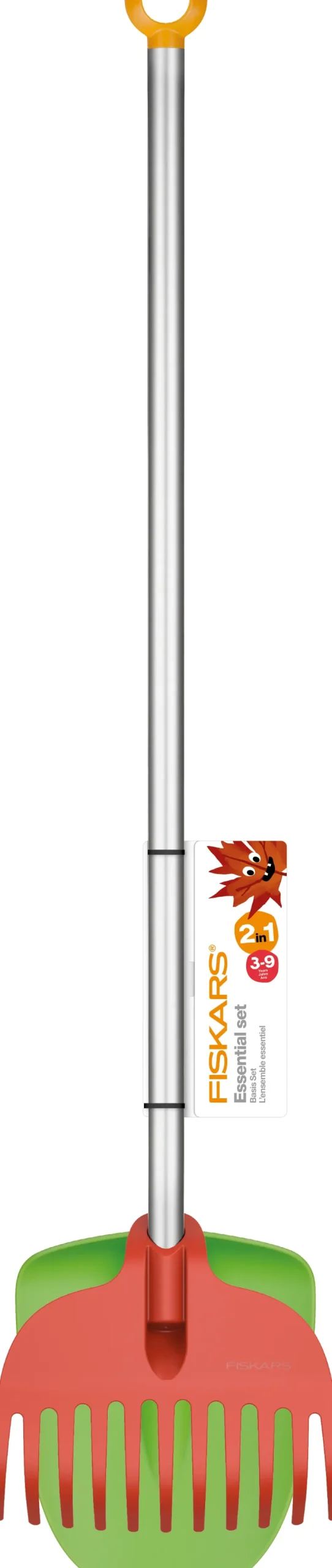 My First Fiskars -puutarhatyökalusetti, johon kuuluu lasten käsille sopiva pistolapio ja harava. Kestävät, lujitemuoviset päät, joissa ei ole teräviä kulmia ja jotka ovat metallisia työkaluja turvallisempia käyttää. Pistolapio soveltuu kunnon kaivamiseen (ei vain leikisti!) kun taas haravan vahvat, taipuisat muovipiikit helpottavat puutarhassa aherrusta. Molemmissa työkaluissa on kevyt mutta vankka, ruosteen- ja säänkestävä alumiinikahva ja kestävä, lujitemuovinen pää.