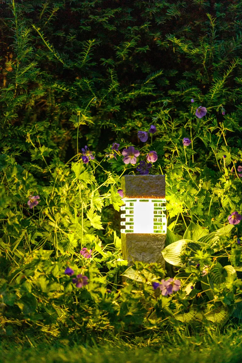 Puutarhavalaisin, korkeus 400 mm, liitäntä 2 m:n kaapelilla SPT-1, jossa on ruuviliitäntä (kotelointiluokka IP44). Puutarhavalaisimessa on lämmin valkoinen PowerLED MR16 12V GU5,3 -pistokkeella.