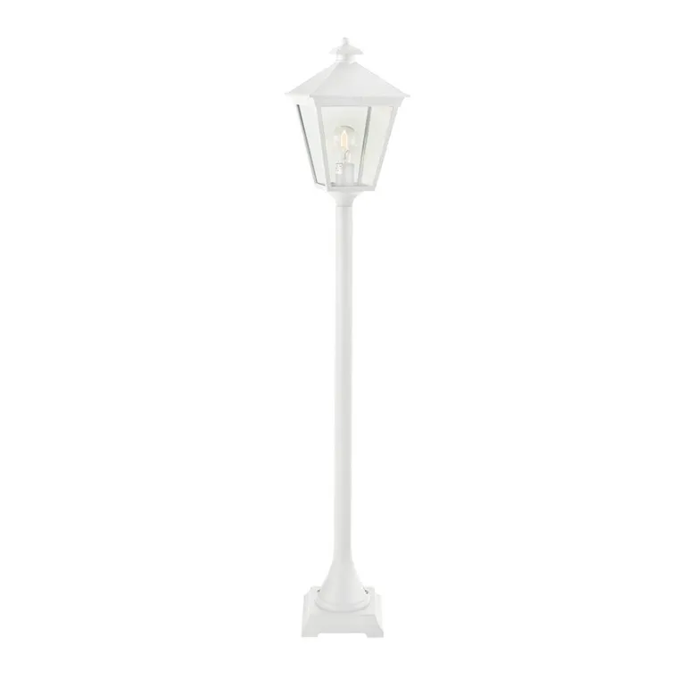 Pylväsvalaisin, jonka valaisin ja pylväs ovat valettua ja jauhemaalattua alumiinia. Polykarbonaattilasi. Valaisimessa on E27-kanta, IP54-luokitus ja teho 77W.