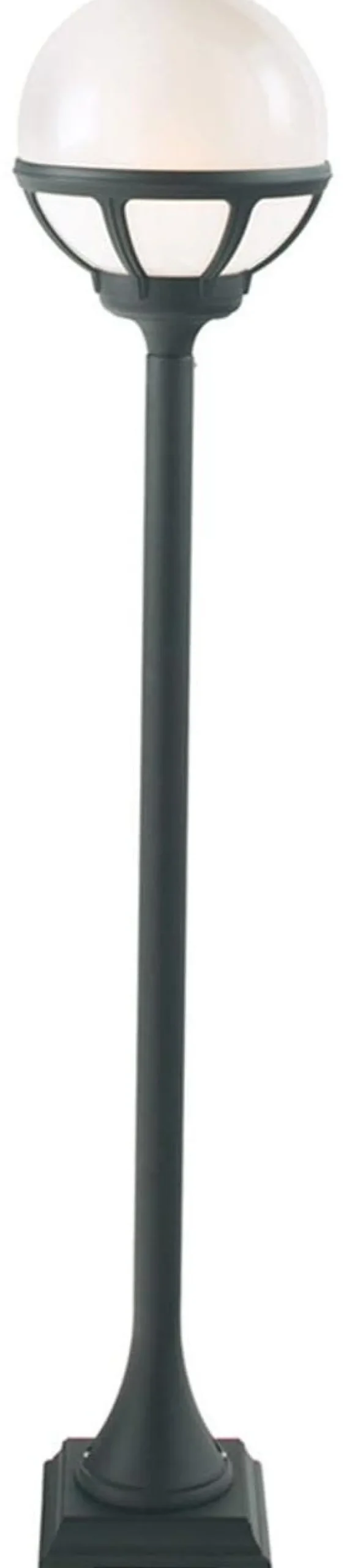 Pylväsvalaisin, jossa on opaalinvalkoinen polykarbonaattikupu, E27-kanta, IP54-luokitus ja teho 46 W. Nelikulmainen jalka, 16,5 cm.