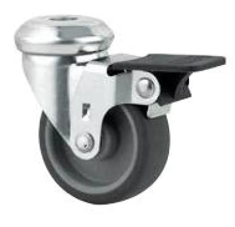 Lämpökumipinnalla varustetut laitepyörät kulkevat pehmeästi ja alustaa säästäen. Sinkkipinnoitetut pidikkeet, pyörissä liukulaakerit. Keskipultin pidike tai litteä kiinnike. Tuotenro 267118 – polyuretaanipinta (PAO).