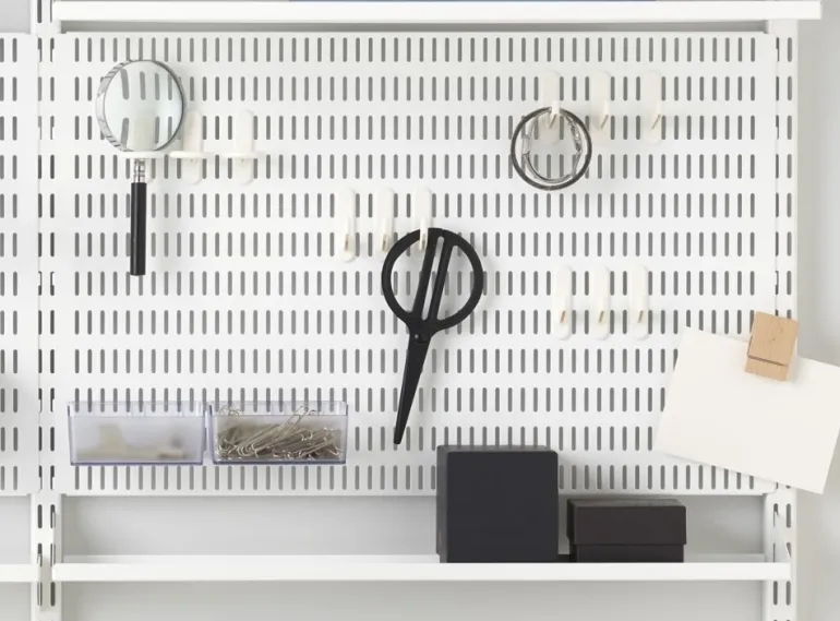 Paranna säilytystaulusi toiminnallisuutta käyttämällä pyöreää koukkua. Nämä koukut ovat täydellisiä pienten esineiden, kuten saksien, ripustamiseen ja järjestämiseen, mikä pitää tilasi vapaana sotkulta.