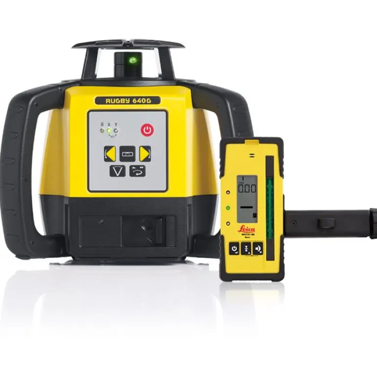 Leica Rugby 640G on erinomainen rakennuslaser vaaka- ja pystyvaaitukseen sekä luotipisteen näyttämiseen. Näkyvän vihreän lasersäteen ansiosta laitetta voi käyttää sisätiloissa ilman laservastaanotinta.