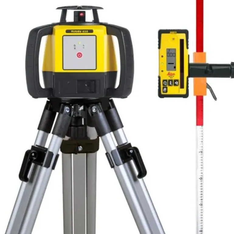 Pyörivä Rugby 610 -laser ja Rod Eye Basic -vastaanotin maksimoivat tehokkuuden. Käyttöväli voidaan pidentää 600 metriin digitaalisilla Rod Eye 140 ja Rod Eye 160 -vastaanottimilla. Rugby 610 sisältää pitkäkestoisen ja nopeasti ladattavan Li-Ion-akun entistä pidempiä käyttöaikoja varten.