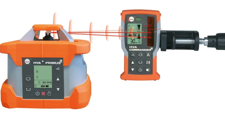 NEDO Primus2 HVA on täysautomaattinen pyörivä laser vastaanottimella. Vaaka- ja pystysovelluksiin. NEDO Primus2 HVA:n tarkkuus on ±1,5 mm. Iso selkeä näyttö näyttää kierrosnopeuden, akun lataustason jne.