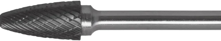 Teroitettu muoto ja pyöristetty pää. Purseiden poistoon ja muodon muokkaamiseen. Keskihammastus ja lastunkatkaisin. Kovametalli.