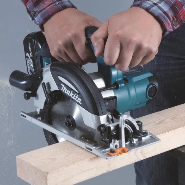 Makita DHS630Z on 18 V:n akkupyörösaha, 165 mm:n terä. Kaksi LED-lamppua työkappaleen valaisuun ja puhallin pitää sahauslinjan puhtaana.