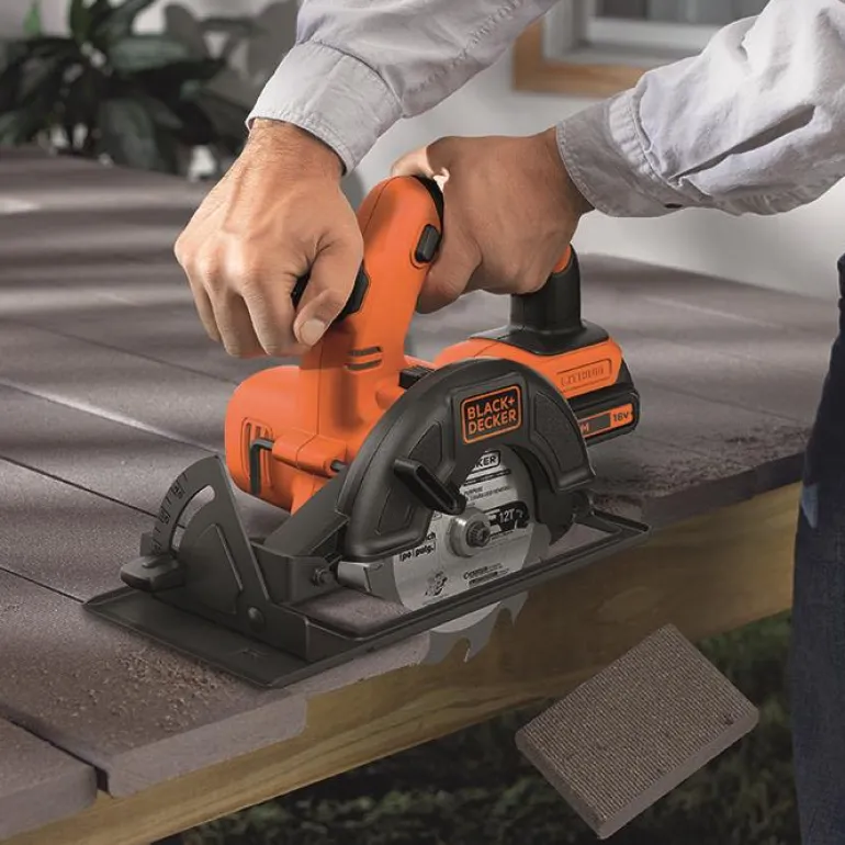 Black & Decker BDCCS18N-XJ on 18 V pyörösaha, jossa on 140 mm sahanterä, sahaussyvyys 43 mm ja voimakas moottori 3700 kierr/min. Saha on kompakti ja kevyt, ja siinä on valettu metallijalka ja hyvä näkyvyys tarkkaa leikkaamista varten.