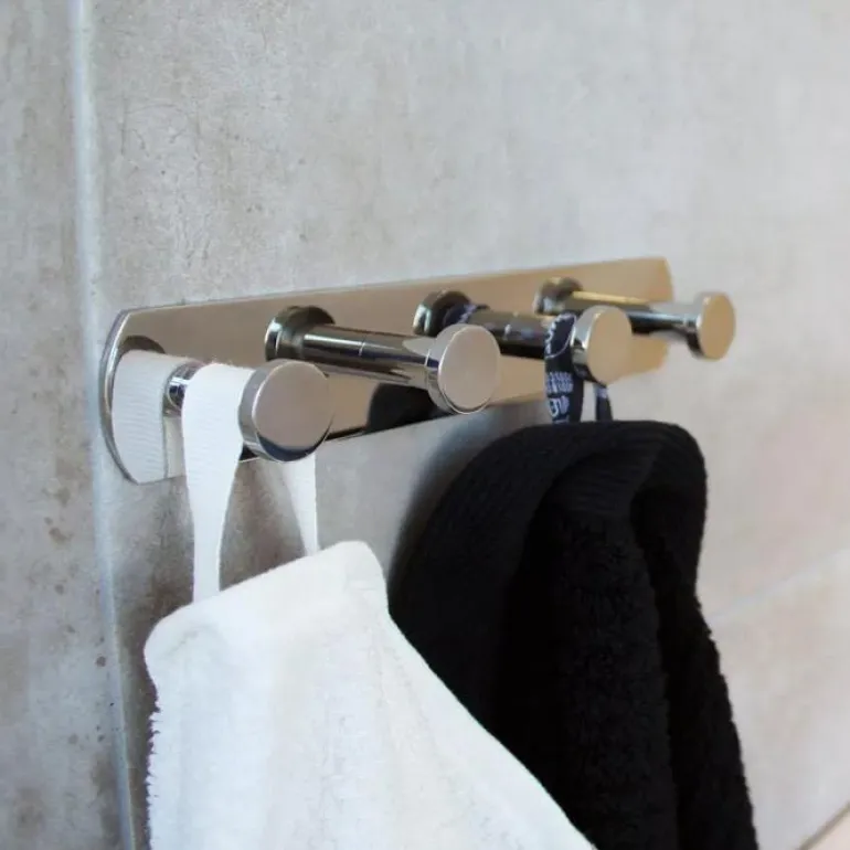 Ruostumattomasta teräksestä valmistettu kiillotettu 4-osainen pyyhekoukku. Porattomaan asennukseen liimaamalla Design4Bath-liimatuotteilla. Liima ei sisälly pakkaukseen. Nopea, helppo ja turvallinen asennus.