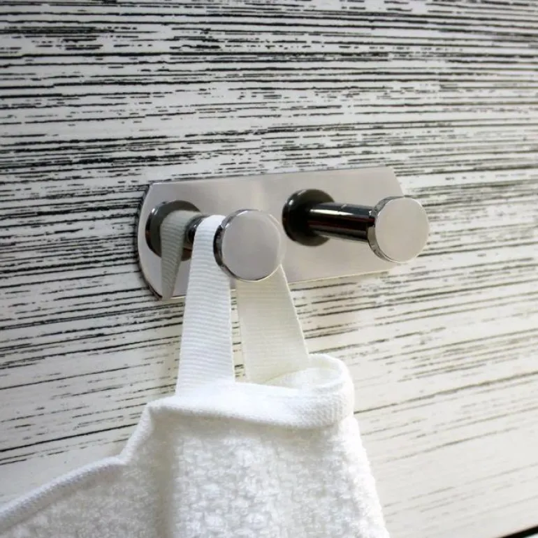 Ruostumattomasta teräksestä valmistettu kiillotettu 2-osainen pyyhekoukku. Porattomaan asennukseen liimaamalla Design4Bath-liimatuotteilla. Liima ei sisälly pakkaukseen. Nopea, helppo ja turvallinen asennus.