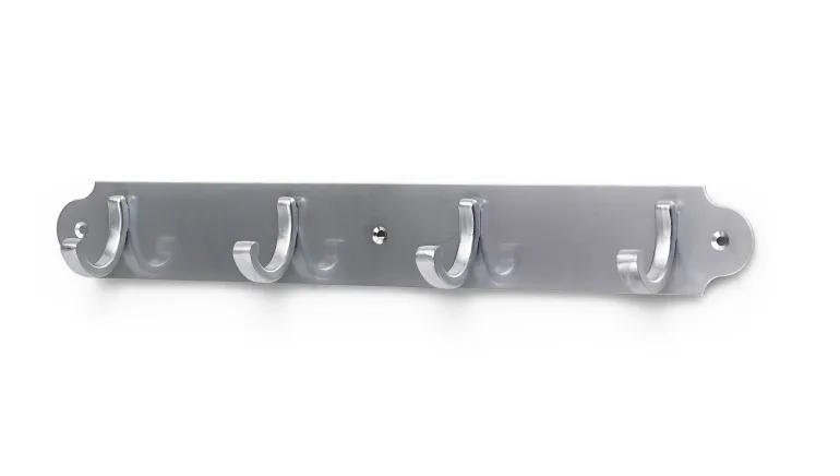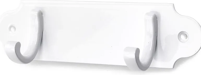 2-koukkuinen pyyhekoukkulista/pyyhenaulakko valkoiseksi maalatusta alumiinista. Ulkonema 42 mm.