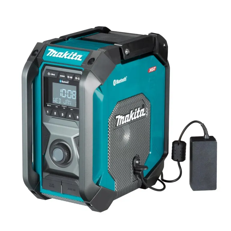 Makita MR006GZ on työmaaradio, joka on varustettu Subwooferilla. Ylä-/keskiäänikaiuttimet tuottavat erinomaisen stereoäänen ja pohjaan sijoitettu bassokaiutin täydentää äänenlaatua. Taajuuskorjaimesta löytyy 6 valmista asetusta eri musiikkityypeille, sekä valinta, jossa voit itse säätää ylä-, keski- ja alaäänet. Huom. ilman akkua ja laturia.
