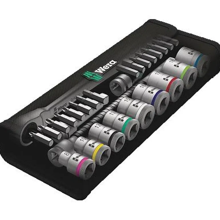 Kompakti 29-osainen räikkäavainsarja 3/8″ kiinnityksellä. Sis. metallisen räikkävarren, jatkokappaleen, sovittimen, hylsyavaimia ja kärkiä. Mukana käytännöllinen kotelo.