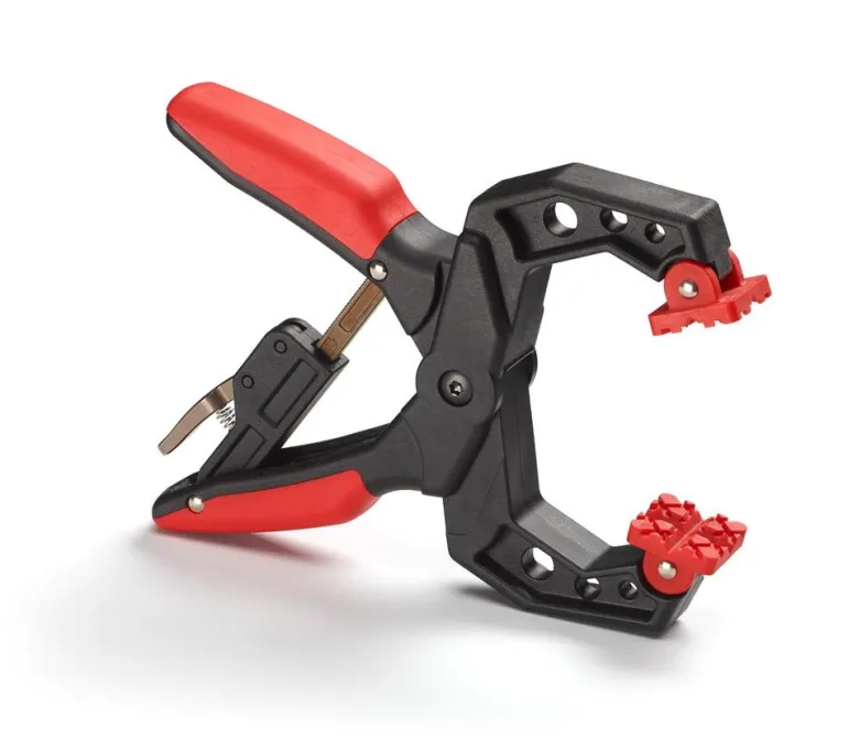 Yhden käden puristin lukitustoiminnolla, joka mahdollistaa erilaiset puristusvoimat. Lasikuituvahvisteinen nailon 2-komponenttisella kahvalla. Muoviset puristuslevyt.