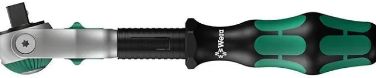 Räikkäväännin 3/8″, pituus 199 mm. Räikkäväännin yhdistää 5 räikkäväännintyypin edut yhteen; hienohammastettu, nivelletty, taivutettu, hylsykiinnitys, tehoräikkäväännin.