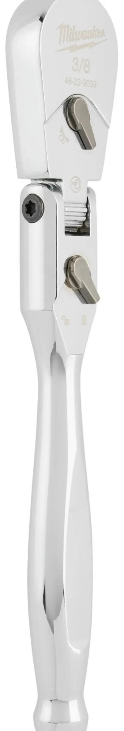 Milwaukee 4932479652 on lukittava 3/8″-räikkäväännin, jonka 90 hampainen räikkä 4 asteen kaarella mahdollistaa työskentelyn ahtaissa tiloissa. Monipuolinen lukittava pää mahdollistaa pään asennon vaihtamisen 9 eri asennon välillä. Ohut pää ja pidennetty kädensija helpottaa pääsyä ahtaisiin tiloihin ja lisää vipuvoimaa.