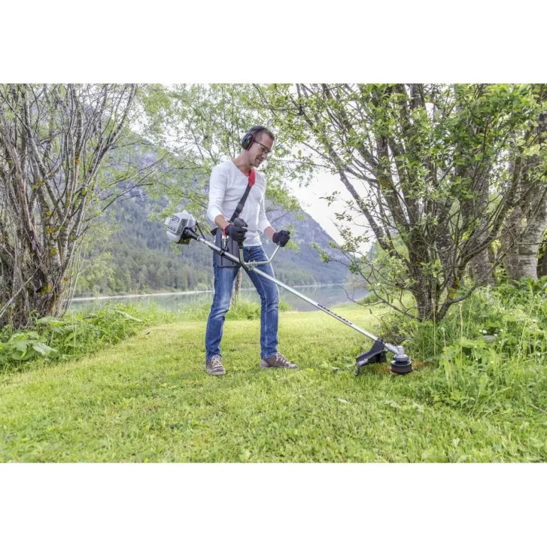 Helposti käynnistettävän, uusimman sukupolven 0,7 kW:n 2-tahtimoottorin ansiosta tämä raivaussaha on tehokas apulainen, jota myös sinä aloittelijana ja harrastajapuutarhurina voit käyttää helposti ja turvallisesti. Se käsittelee tehokkaasti kaikenlaista maata – suuria ruohoalueita, korkeaa ruohoa ja pensasaitoja. Optimaalinen joustavuus vaihdettavan leikkuupään ansiosta: Hellävarainen langanpää, jonka leikkuuleveys on 41 cm, voidaan vaihtaa mukana toimitettuun 25 cm metalliterään. Raivaussahan kevyt paino (5,9 kg) ja yksinkertainen käsittely ergonomisella Bike-kahvalla takaavat tehokkaan työn ja nopean leikkaustuloksen avoimilla alueilla, kuten myös aitojen ja muurien vieressä. Kevyt ja kestävä alumiinivarsi. Automaattitoiminnon avulla voit helposti asettaa leikkurin optimaalisen langan pituuden napauttamalla leikkurin päätä maahan (ei teräkäytössä).