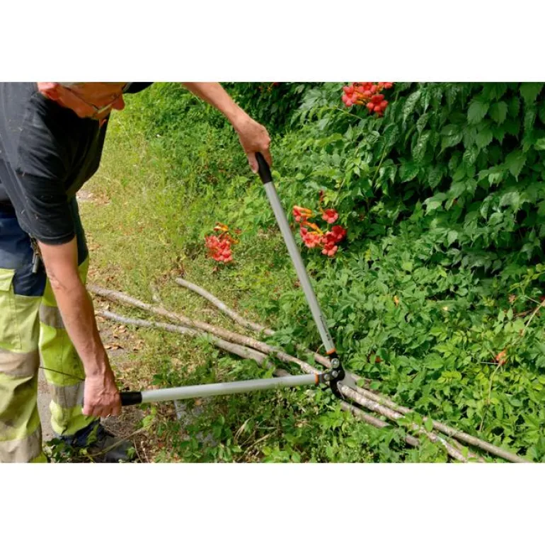 Raivaussaksien vipuvaikutus antaa 50 % lisää tehoa ja säätölevy pidentää terän käyttöikää. Kokonaispituus on 850 mm ja pitkä leikkuusärmä.