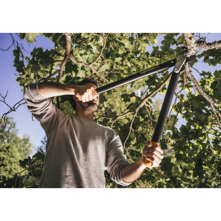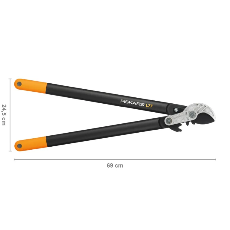 Vastakappaleella varustetut oksasakset karkeiden ja kovien oksien leikkaamiseen. Tuntuu kevyeltä myös pitkäaikaisessa käytössä. PowerGear-mekanismi antaa leikkaukseen 3X enemmän tehoa. Mukavat SoftGrip-kahvat. FiberComp-materiaali. Vaihdettava terä. Leikkauskapasiteetti Ø50 mm.