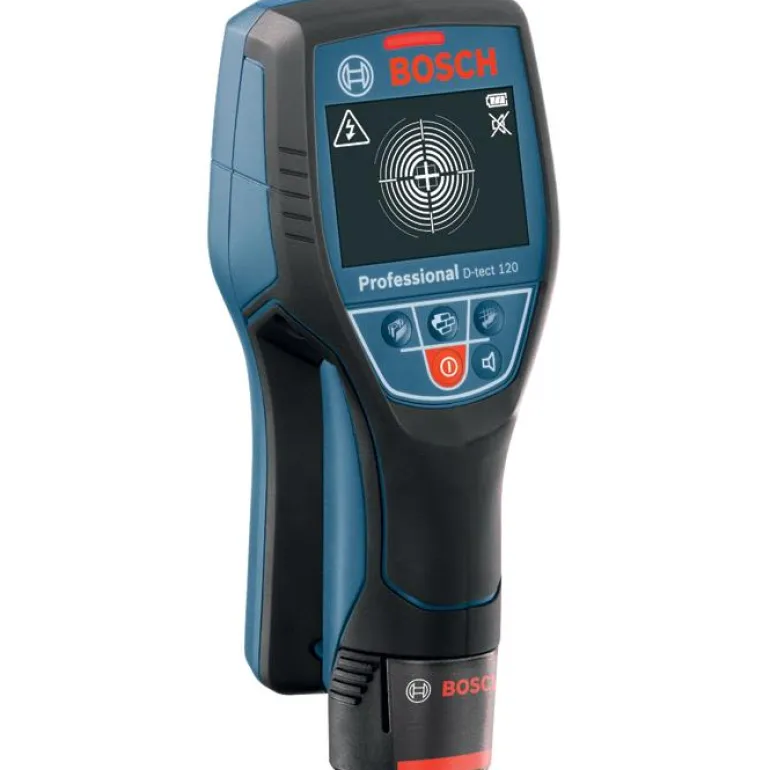 Bosch Wallscanner D-tect 120 Professional on akkukäyttöinen rakenneilmaisin 12V. Toimii 10,8 V:n akuilla ja tavallisilla AA-alkaliparistoilla.