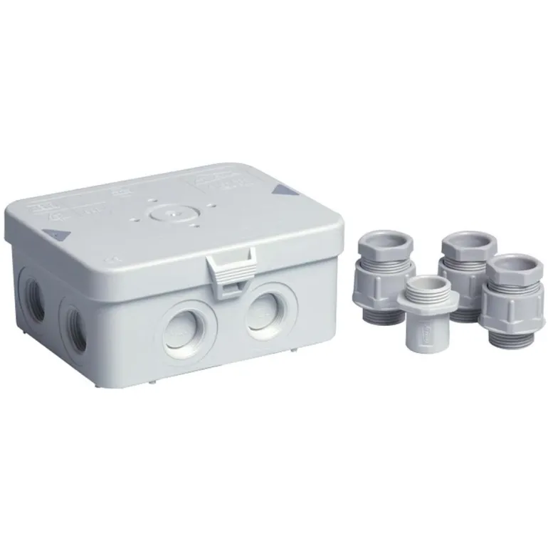Seinälle tai kattoon asennettava kannellinen rasia, 8 sisääntuloa joista 1 takana, M20x1.5-kiinnikkeet. Mukana toimitetaan 3 kappaletta M20-holkkitiivisteitä 8-13 mm kaapelille sekä yksi M20-ulostulo.