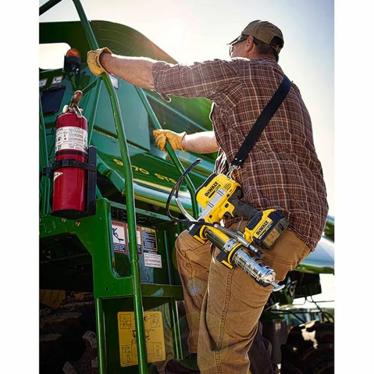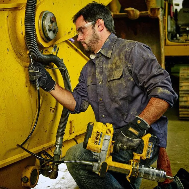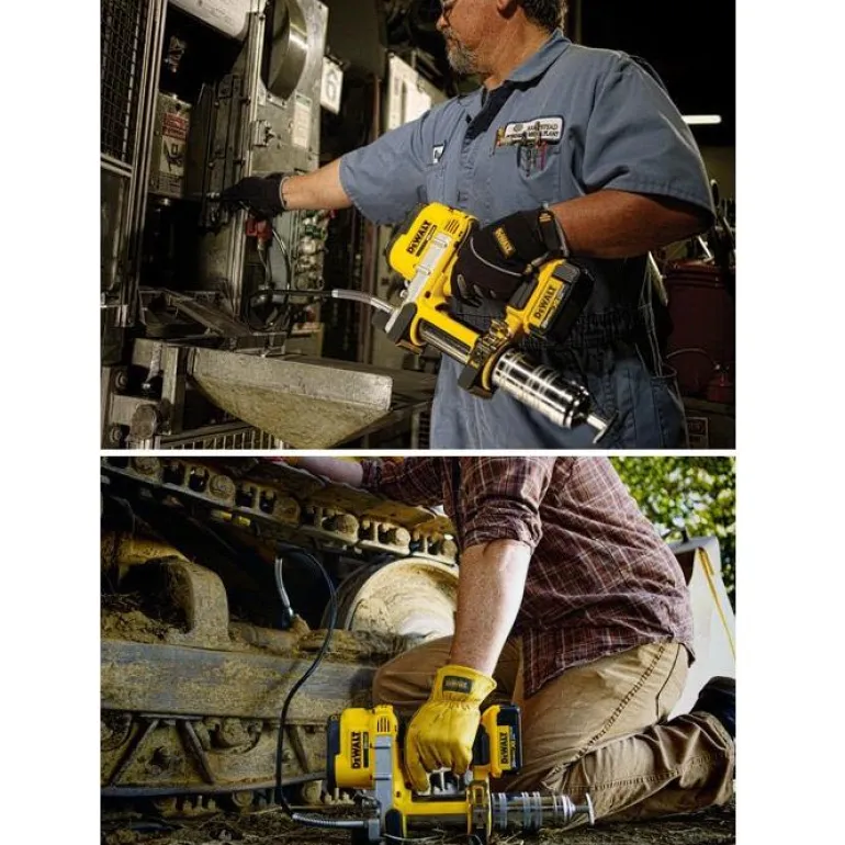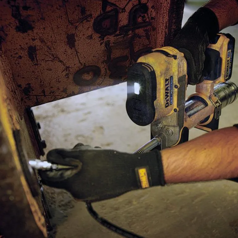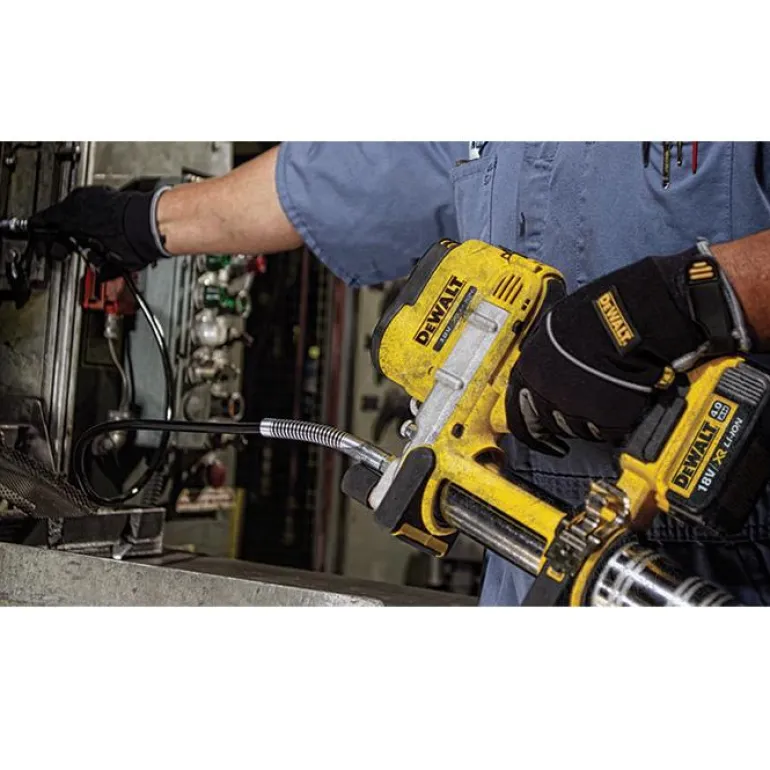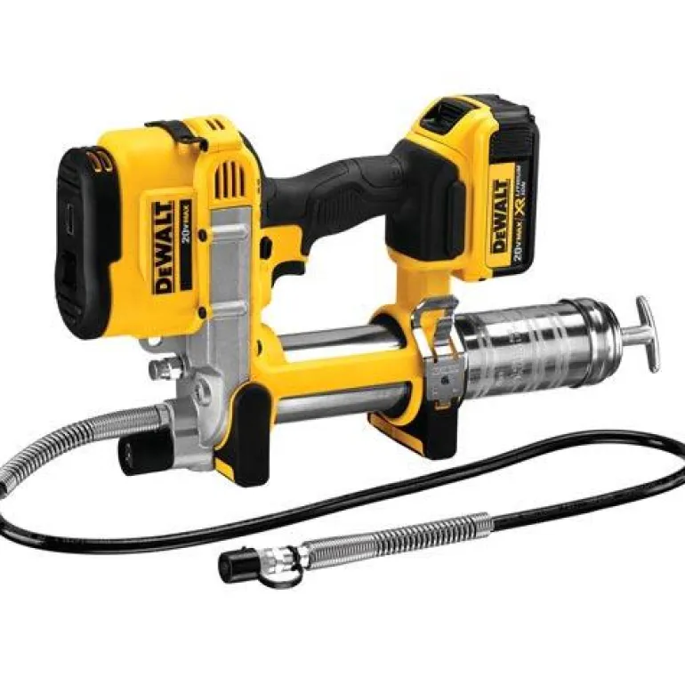 DEWALT DCGG571M1 on 18 V:n rasvapuristin, jonka 1 metrin letku tuottaa 690 baarin työpaineen. Sopii 400 ml:n patruunoille.