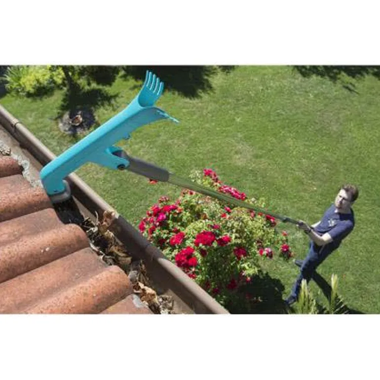 GARDENA Combisystem on räystäskourun puhdistaja, joka on optimoitu räystäskourujen helppoon puhdistamiseen. Toisella puolella olevat jäykät harjakset ja kaksi tehokasta korkealaatuista muovikaavinta toisella puolella mahdollistavat tehokkaan puhdistuksen. Varustettu kahvalla, joten puhdistajaa voidaan käyttää myös ilman Combisystem-kahvaa. Puhdistajaa voi käyttää myös vesiletkun kanssa Gardena Original System -liittimen ansiosta, mikä tekee siitä entistäkin tehokkaamman. Työkulmaa voidaan säätää tarvittaessa pikasäätimellä. Räystäskourun puhdistaja toimii kaikkien GARDENA Combisystemin kahvojen kanssa, joista teleskooppikahvalla saadaan pisin työskentelyetäisyys (noin 5 m).
