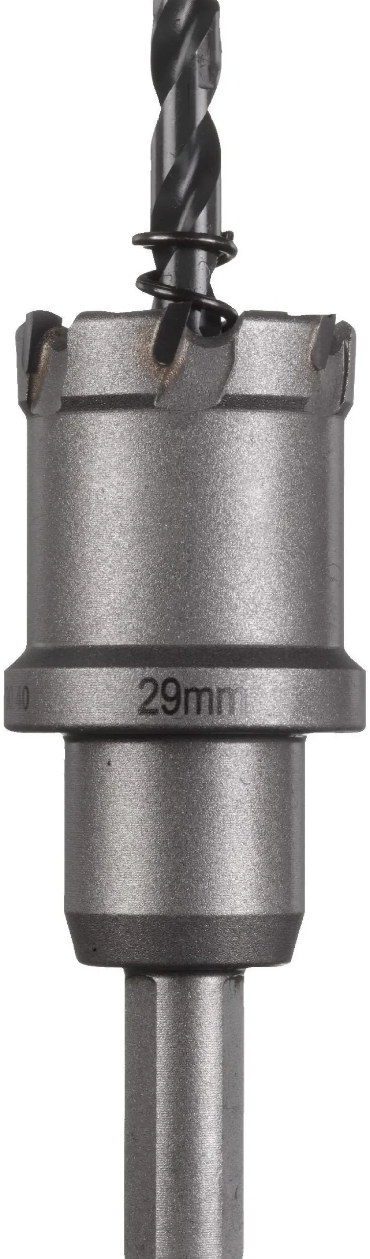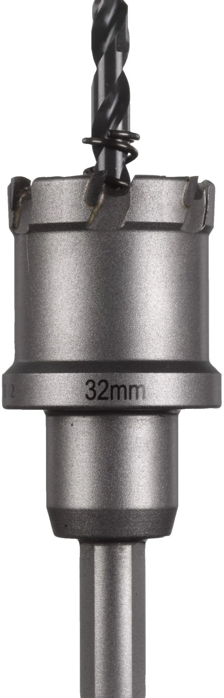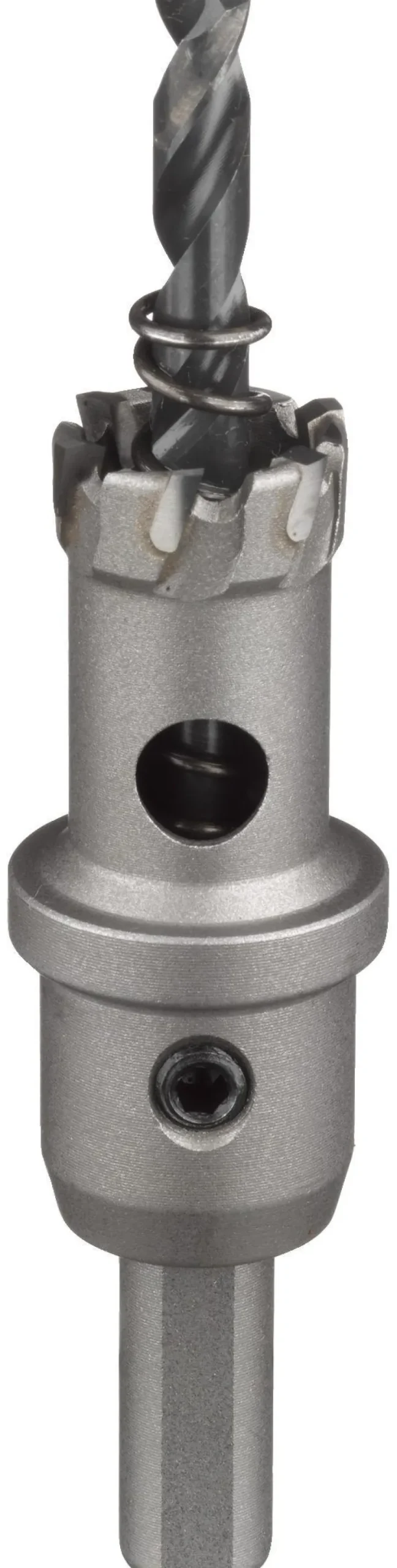 TCT-metallireikäsaha Milwaukeelta. Karbidihammasteknologia tarjoaa parhaan suorituskyvyn, nopeuden ja pitkän käyttöiän. 25 mm poraussyvyys levymetallin ja putkien poraamiseen. Yksiosainen muotoilu, joka vähentää tärinää ja mahdollistaa tarkan porauksen. Turvakaulus estää yliporaamisen. Työntöjousi työntää tulpan ulos, mikä säästää aikaa. 3-reunainen varren muotoilu estää terää liukumasta istukassa ja takaa parhaan tehon siirtymisen. Halkaisijat 16–76 mm 10 mm:n 3-reunaisella varrella ja yli 80 mm:n halkaisijat 13 mm:n 3-reunaisella varrella. Vaihdettava keskiöporanterä ja jousi. Käytä viilentävää voiteluainetta pidentääksesi terän käyttöikää. Käytä metalleihin leikkausöljyä, alumiinille tärpättiä ja muoville vettä. Kuivaporaus valurautaan. Sopii teräksen poraamiseen (<1200 N/mm²) 4 mm asti, ruostumattoman teräksen poraamiseen 2 mm asti sekä alumiinille, valuraudalle, kuparille, lasikuidulle ja PVC:lle.
