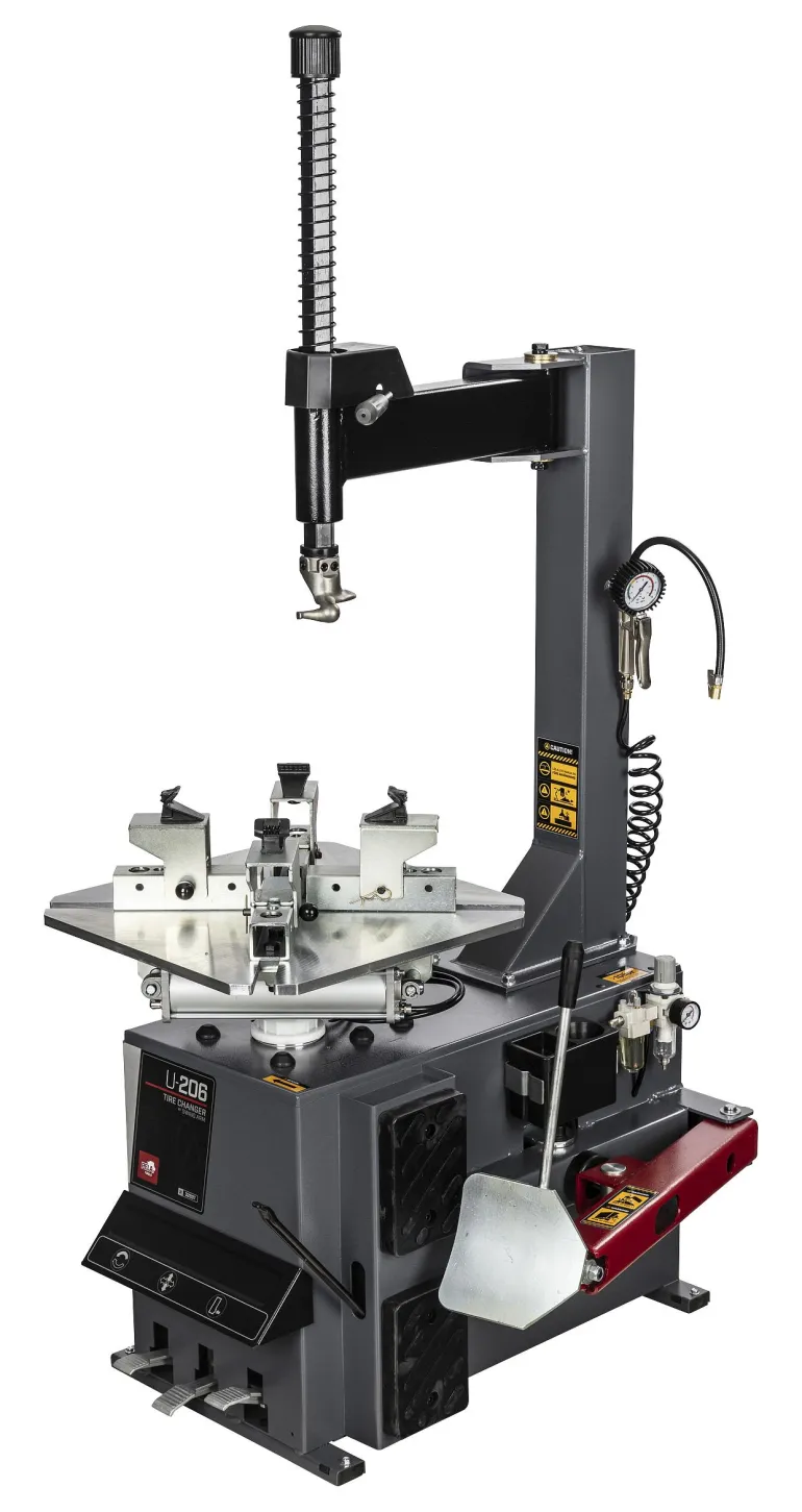 PELA U-206 on moottoripyörille suunniteltu puoliautomaattinen rengaskone. Pyörivä pöytä ja lusikka on suunniteltu erityisesti moottoripyörän renkaille.