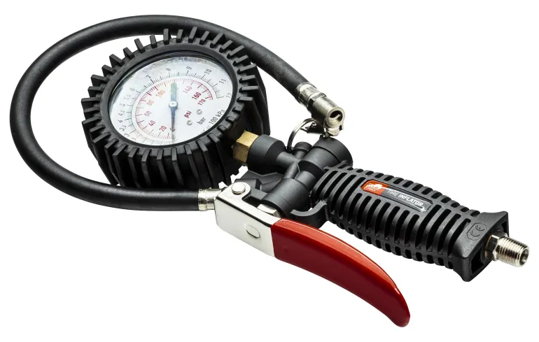 Pela 510971 on rengaspainemittari (renkaantäyttöpistooli) ilmanpaineen tarkastamista, lisäämistä ja vähentämistä varten. Uritettu kahva iskunkestävästä muovista ja kumitettu painemittari.