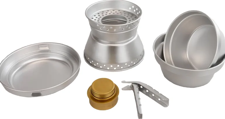 PELAn täydellinen 8-osainen retkikeitinsetti retkeilyyn, vaelluksille ja muihin ulkoilma-aktiviteetteihin, kun ei varsinaista keittiötä ole käytettävissä. Retkikeittimeen sisältyy erittäin tehokas tuulensuoja, joka suojaa liekkiä tuulelta mutta myös kerää ja säilyttää lämpöä tehokkaasti. Tämä mahdollistaa ruoanlaiton ja veden keittämisen myös tuulisissa olosuhteissa. Setin osat on suunniteltu kevyiksi ja kompakteiksi, ja koko setti vie hyvin vähän tilaa pakattuna. Retkikeitinsarjalla voit tehdä kaikkea valmiiden keittojen lämmittämisestä monimutkaisempien kastikkeiden ja aterioiden valmistamiseen – tietenkin riippuen mukana olevista raaka-aineista.