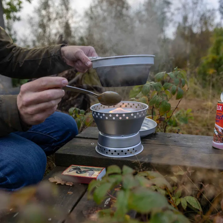 Retkikeitin on spriikäyttöinen (ei sisälly pakkaukseen) ja on käytännöllinen ratkaisu luonnossa liikkujalle, sääolosuhteista riippumatta.