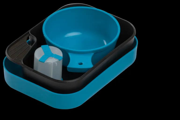 Retkiruokailusetti kahdella retkiastialla, yhdistelmäaterimella, muovikuksalla ja maustepurkilla. Kätevä retkeillessä ja vaelluksella. BPA-vapaa.