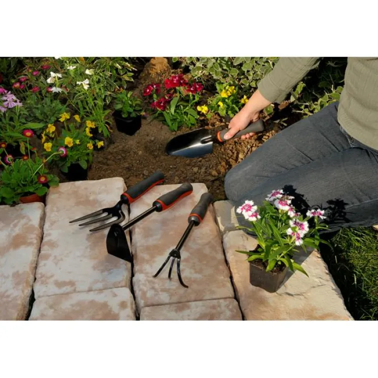 3-piikkinen tukeva rikkaruohoharava, karkaistua terästä. Haravassa on mukava kaksikomponenttikahva, josta saa pitävän otteen. Sopii kivikkopuutarhoihin, parvekkeille, ruukkuihin ja kohopenkkeihin.