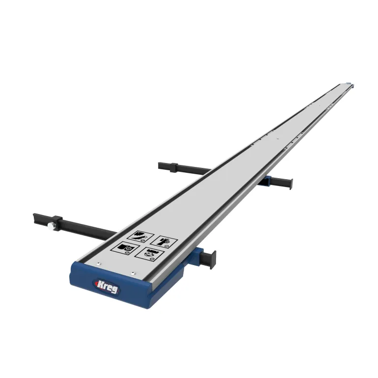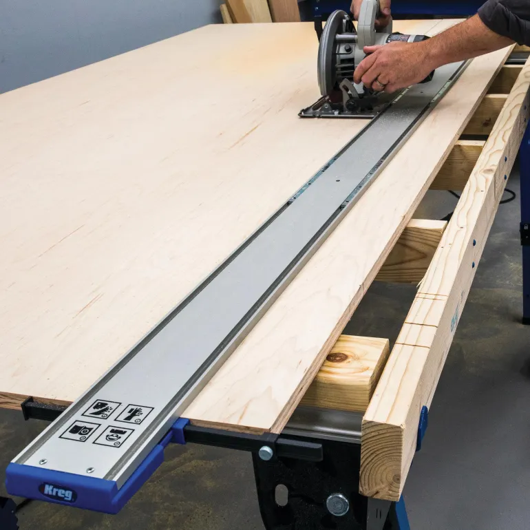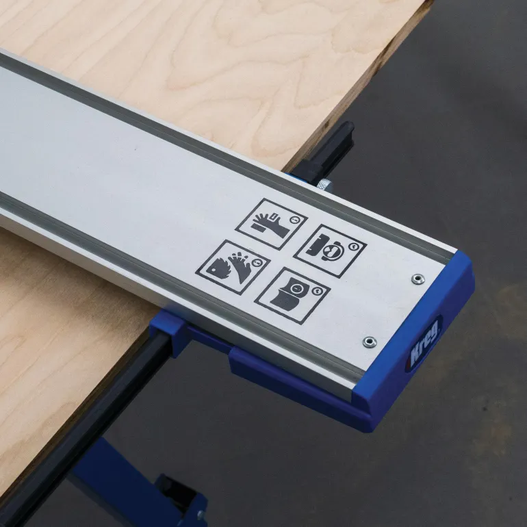 Leikkaa kokonaiset vanerilevyt tarkasti ja kevyesti Kreg Straight Edge Guide XL:n avulla. Työskentele jopa 244 mm materiaalien kanssa pyörösahalla, pistosahalla tai jyrsimellä.