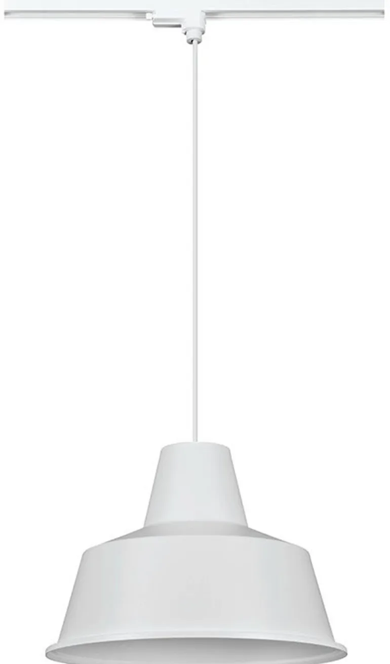 Valkoinen riippuvalaisin E27-kannalla. Soveltuu asennettavaksi kattoihin tai 3-vaiheisiin kiskoihin. Jauhemaalattu kotelo suulakepuristettua alumiinia.