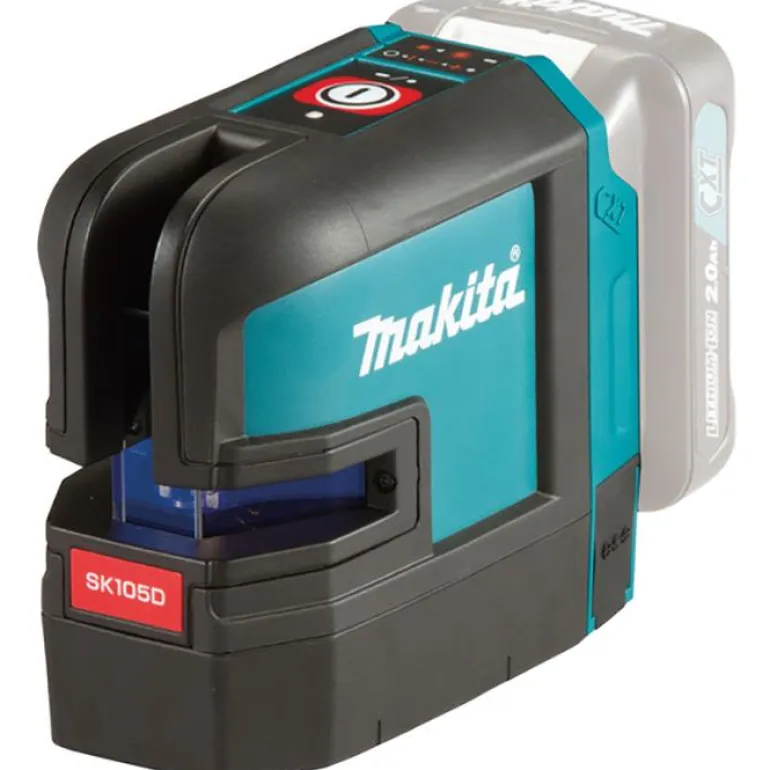 Makita SK105DZ on 12 V ristilaser. Punainen pysty- ja vaakaviiva erikseen tai yhdessä. Kaikki toiminnot yhdellä painikkeella. IP54 roiskevesi- ja pölysuojaus. Toimitetaan ilman akkua ja laturia.