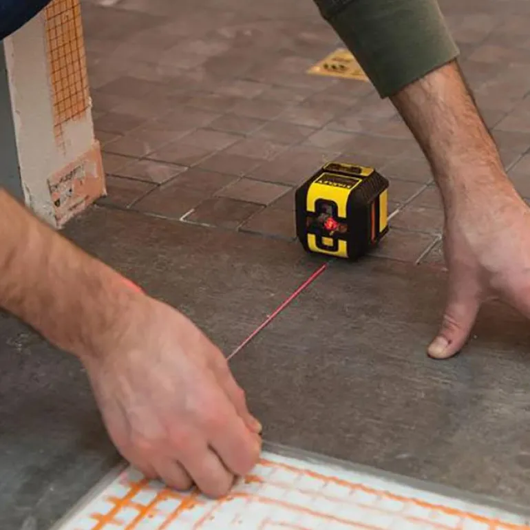 Ristilaser, jonka kantama on 12 metriä. Itsetasaava +/-4°. Heijastaa vaaka- ja pystysuoran viivan ja muodostaa poikittaisviivan sekä 90°:n pystyviivan
