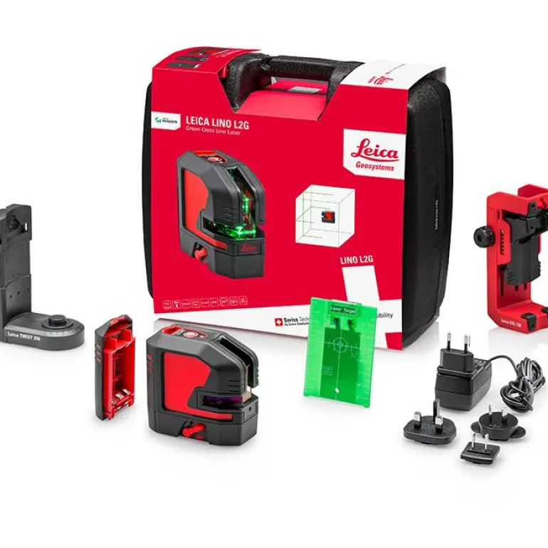 Leica Lino L2G-1:n jalustakierre on pieni, joten se sopii 1/4″-kierteiseen jalustaan. Kun ristilaseriin on kiinnitetty toimitukseen sisältyvä seinäkiinnike, laserin voi kiinnittää 5/8″-kierteiseen jalustaan.