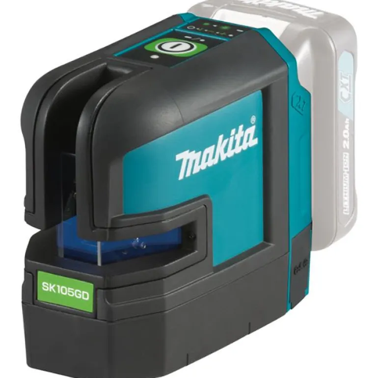 Makita SK105GDZ on 12 V Itsetasaava ristilaser.Vihreä pysty- ja vaakaviiva erikseen tai yhdessä. Kaikki toiminnot yhdellä painikkeella. IP54 roiskevesi- ja pölysuojaus. Toimitetaan ilman akkua ja laturia.