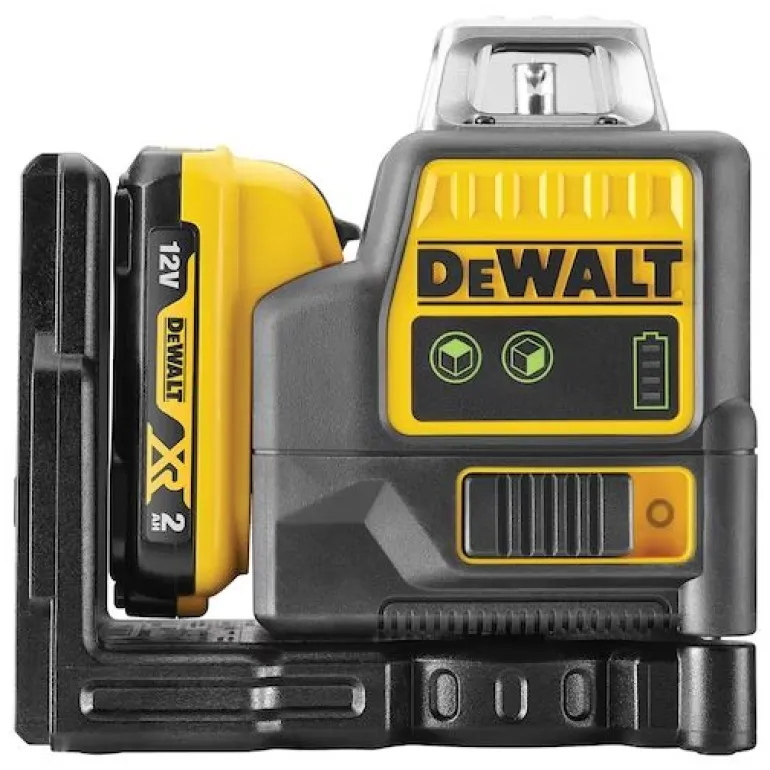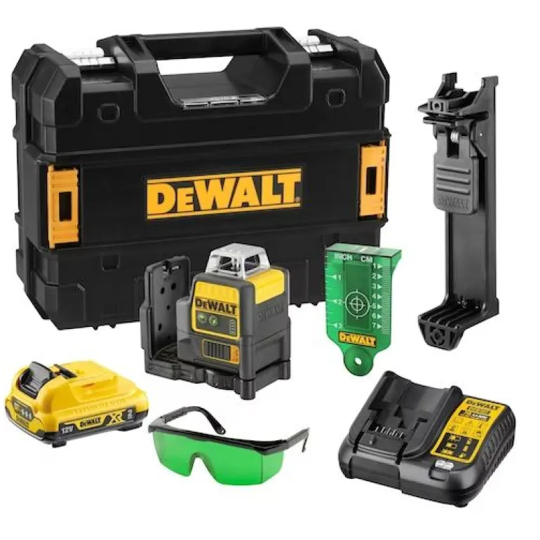 DEWALT DCE0811D1G on 12 V:n ristilaser, jossa on vihreä lasersäde. Kaksi itsetasaavaa linjaa 360°, vaaka- ja pystylinja. Kantama jopa 30m ja tarkkuus ±3 mm.