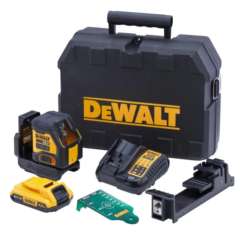 DEWALT DCLE34021D1-QW on 18V Compact -ristilinjalaser, joka on yhteensopiva 18V XR -järjestelmän akkujen kanssa ja tarjoaa erinomaisen 55 metrin toiminta-alueen (jopa 100 m ilmaisimen kanssa) luokkansa johtavalla vihreän säteen teknologialla, mikä takaa erinomaisen näkyvyyden vaativimmissakin työmaaolosuhteissa. Ilmaisin ei sisälly toimitukseen. Mukana 18 V 2,0 Ah -akku, DCB107 -laturi, seinäkiinnike ja säilytyslaatikko.