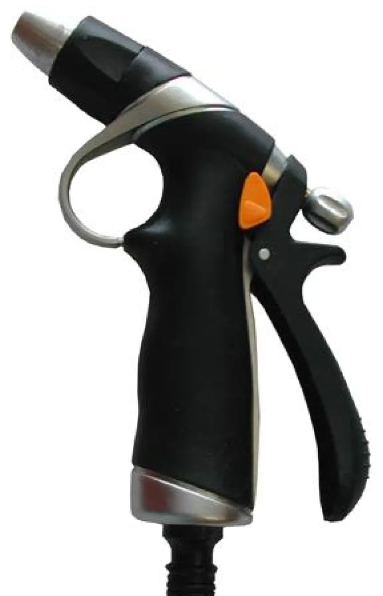 Ergonomisesti muotoiltu suihkupistooli, alumiiniinen kumikahva suunniteltu puhdistukseen ja kasteluun. Säädettävä virtaus ja suihku.