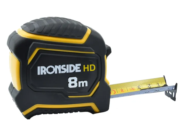 Ironside Heavy Duty (luokan 2) mittanauha, jossa 2-väripainettu nauha (asteikot molemmilla puolilla). Kaksikomponenttinen kotelo.