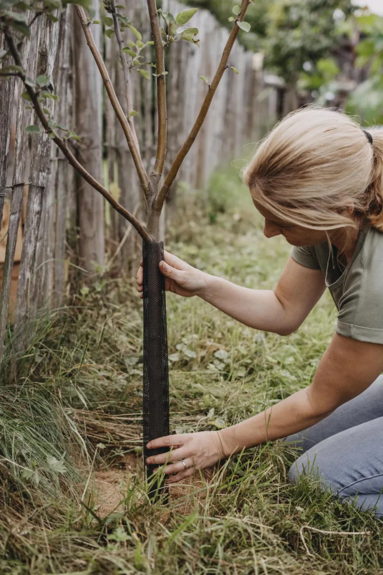Muoviverkko, joka suojaa nuoria puuntaimia. Verkko laajenee puun kasvun mukaan. Toimitetaan 4 kpl:n pakkauksessa.