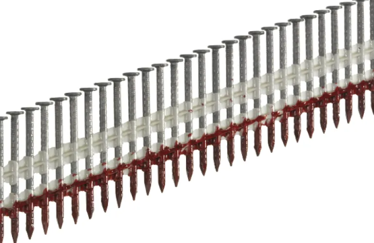 Urahakattu naula Ø2,8 x 65 mm palkkeihin, kattotuoleihin, siltoihin, pakkauksiin jne. Sidottu runkonaula, kaltevuus 17°. Muovisidottu / harva nauha, pyöreä kanta. 30 naulaa/nauha. Toimitetaan 500 kpl:n pakkauksessa.