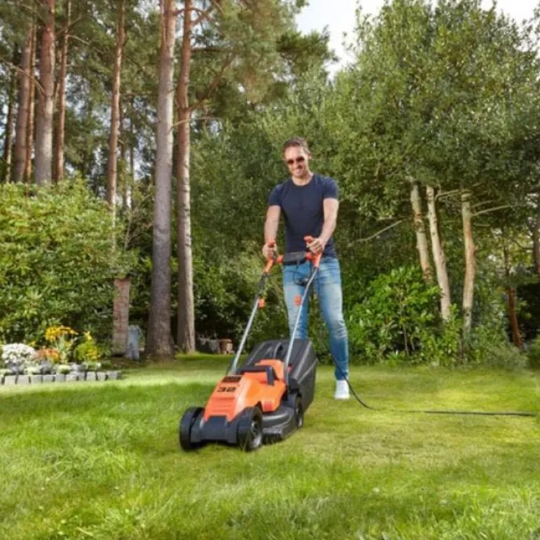 Black & Decker BEMW451BH-QS on 1200 W ruohonleikkuri, jonka leikkuuleveys on 32 cm. Ruohonleikkurissa on ergonominen kahvasuunnittelu, joka lisää käyttömukavuutta ja helpottaa koneen käyttöä. Easy Start -toiminnolla varustettu ruohonleikkuri on helppo kytkeä päälle ja pois päältä aktivointipainikkeella. Suuri ruohonkerääjä säästää aikaa eikä sitä tarvitse tyhjentää jatkuvasti, ja se on varustettu ilmaisimella, joka osoittaa, milloin se on täynnä.