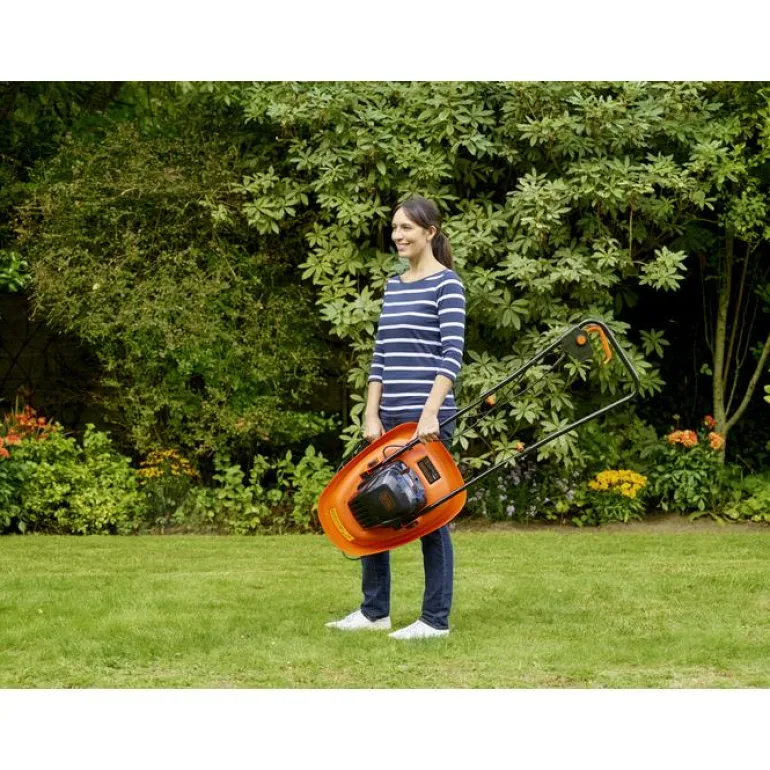 Black & Decker BEMWH551-QS on 1200 W ruohonleikkuri, joka liikkuu ruohon yli ilman avulla ja leikkaa tasaisesti ja helposti. Ruohonleikkuri on kevyt ja tehokas, joten se sopii erinomaisesti puutarhoihin, joissa on mäkiä ja epätasaisuutta. Saavuttaa pinnat, joita suuremmat ruohonleikkurit eivät pysty käsittelemään.